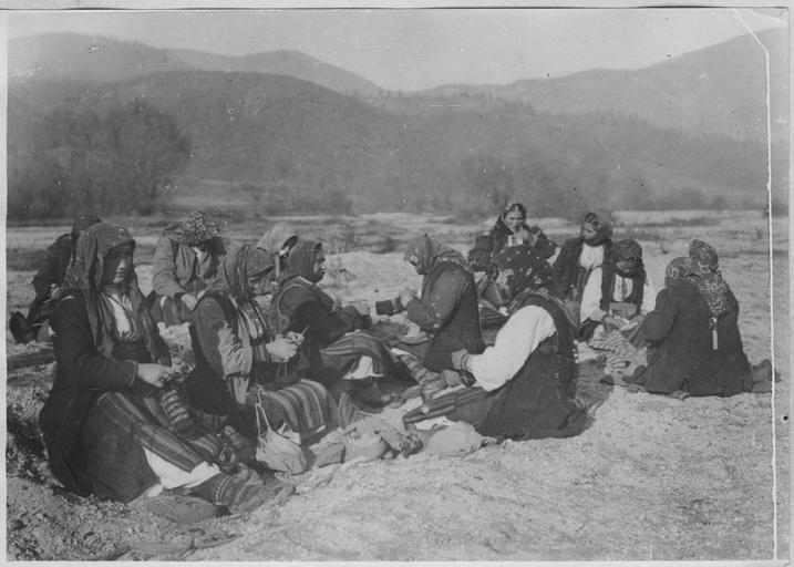 Στην φωτογραφία βλέπουμε δέκα γυναίκες διαφόρων ηλικιών να κάθονται όλες μαζί στο έδαφος. Συγκεκριμένα βλέπουμε πως όλες ασχολούνται με κάτι , δεν διακρίνεται καλά τι κάνουν αλλά θα λέγαμε πως πλέκουν. Ορισμένες έχουν γυρισμένη την πλάτη τους στην κάμερα, τα πρόσωπά τους φαίνονται σοβαρά δεν χαμογελούν, καμία δεν κοιτάει την κάμερα αυτό δείχνει πως δεν είναι σκηνοθετημένη η λήψη της φωτογραφίας. Όλες οι γυναίκες είναι ντυμένες με την παραδοσιακή στολή ωστόσο όλες είναι σκουρόχρωμες ακόμα και οι μαντίλες που φορούν, αυτό δείχνει πως μπορεί να είναι χήρες καθώς η περίοδος που τραβήχτηκε η φωτογραφία είναι εν μέσω πολέμου. Από την φωτογραφία καταλαβαίνουμε πως δεν είναι σε καλή οικονομική κατάσταση. Η περιοχή (βουνά Αλβανίας- Ελλάδας, Κότας) στην οποία βρίσκονται είναι νεκρή ως προς την βλάστηση και ότι βλάστηση υπάρχει βρίσκεται στο βάθος η οποία είναι χαμηλή και συνοδεύετε με λίγα δέντρα. Επίσης βλέπουμε στο βάθος βουνά ενδεχομένως οι γυναίκες να κάθονται σε κάποιο οροπέδιο. Η εποχή που έγινε η λήψη πιθανόν να είναι τέλη καλοκαιρού ή αρχές φθινοπώρου.